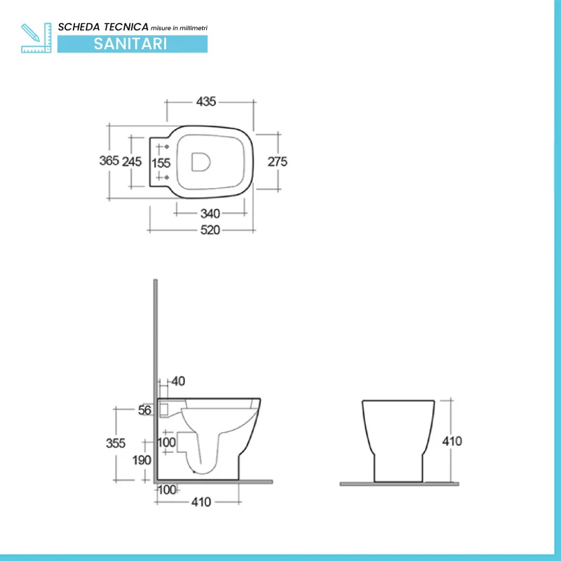 • Scarico a parete o a pavimento,INCLUDE curva tecnica e kit di fissaggio;