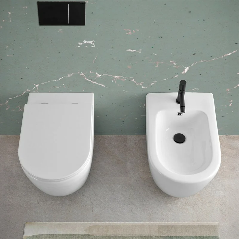 Vaso in ceramica lucida con installazione filo parete e scarico universale a parete oa pavimento