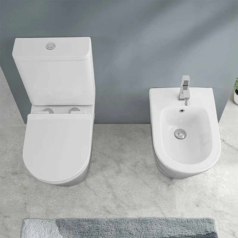 Il sanitario è progettato in ceramica bianco lucida di alta qualità con design senza brida Rimless e installazione a filo parete,compatibile sia con scarichi a muro che a pavimento mediante l’ausilio dell’apposita curva tecnica. A completare il WC,il sedile copriwater con chiusura ammortizzata soft close e sgancio rapido.