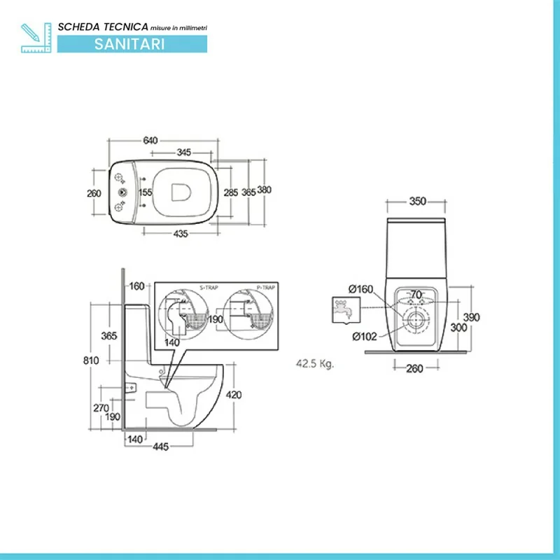 • INCLUDE sedile, cassetta completa di sistema di scarico e fissaggi nascosti;