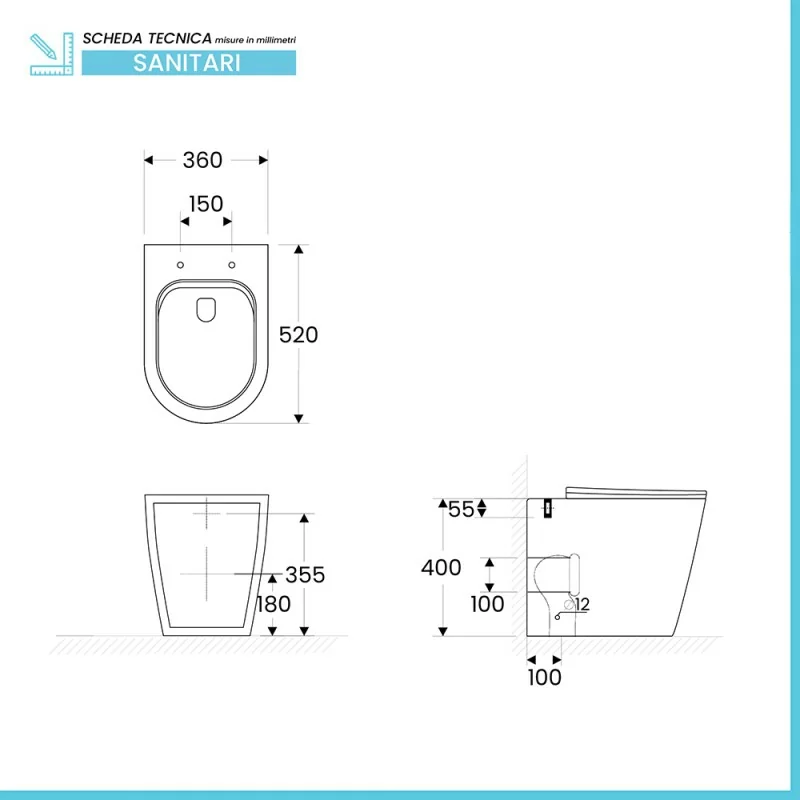 Wc filomuro - caratteristiche tecniche: