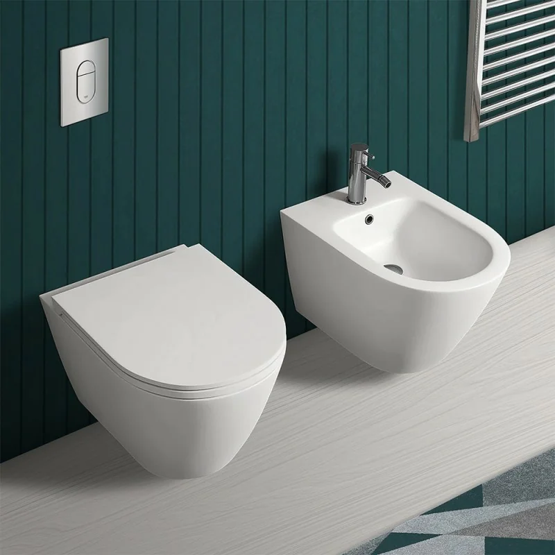 Wc sospeso rimfree serie Feeling in ceramica con finitura bianco matt