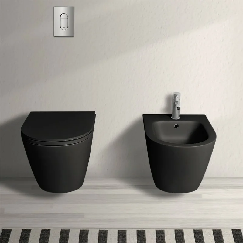 Wc sospeso nero opaco rimless in ceramica serie Feeling