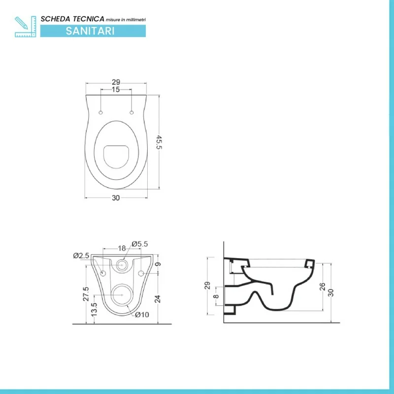 Vaso WC per bambini H29cm sospeso in ceramica bianca Foto Vaso WC per bambini H29cm sospeso in ceramica bianca scheda tecnica Vaso WC per bambini H29cm sospeso in ceramica bianca