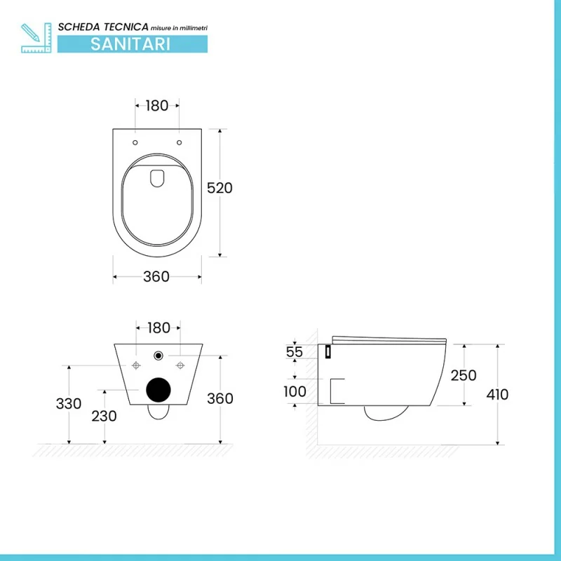 Vaso singolo ad installazione sospesa con scarico Rimless Linea Ukra