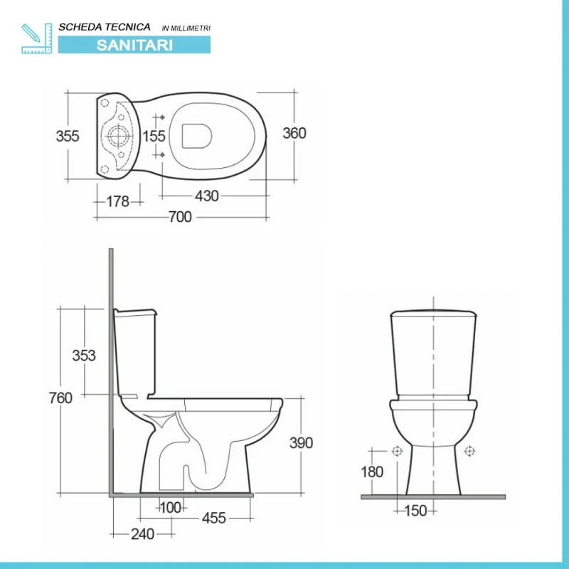 Il sanitario proposto si compone di vaso,copriwater,cassetta e sistema di scarico completo.